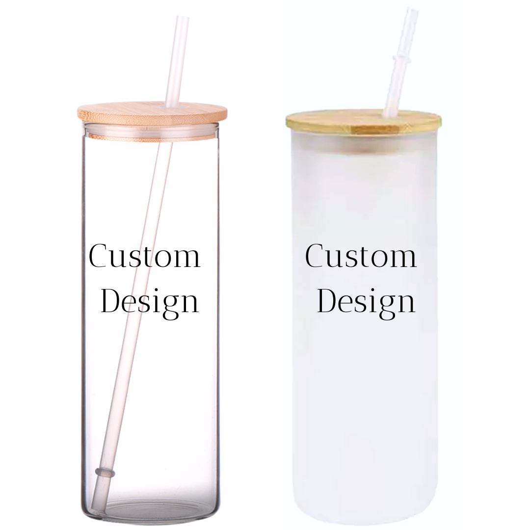 Have your custom design put on our cute, trendy, high quality and durable 16oz glass tumbler cup with a bamboo lid and plastic straw included.