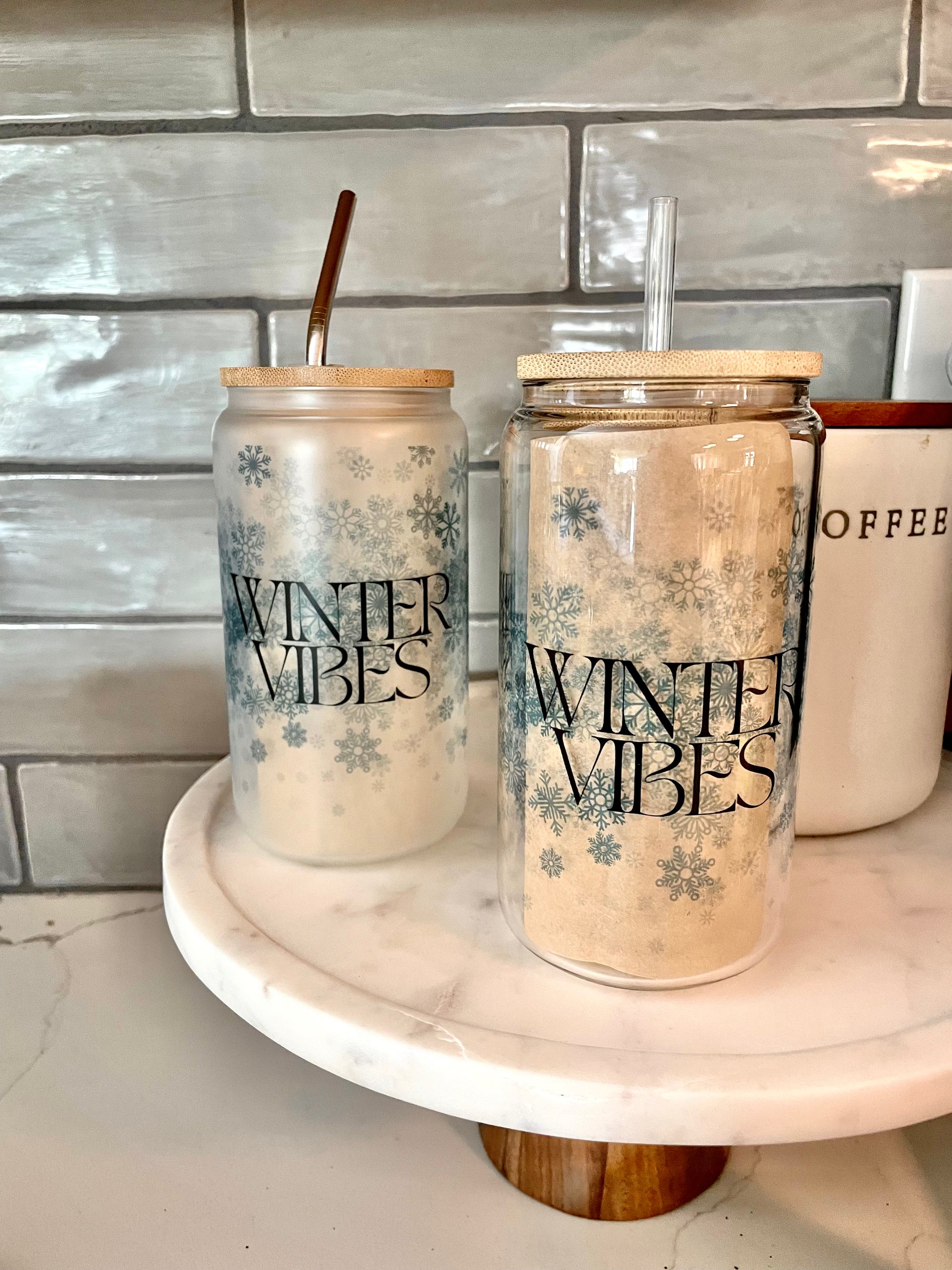 Winter Wonderland Collection 16oz Glass Tumbler w/ Bamboo Lid & Straw