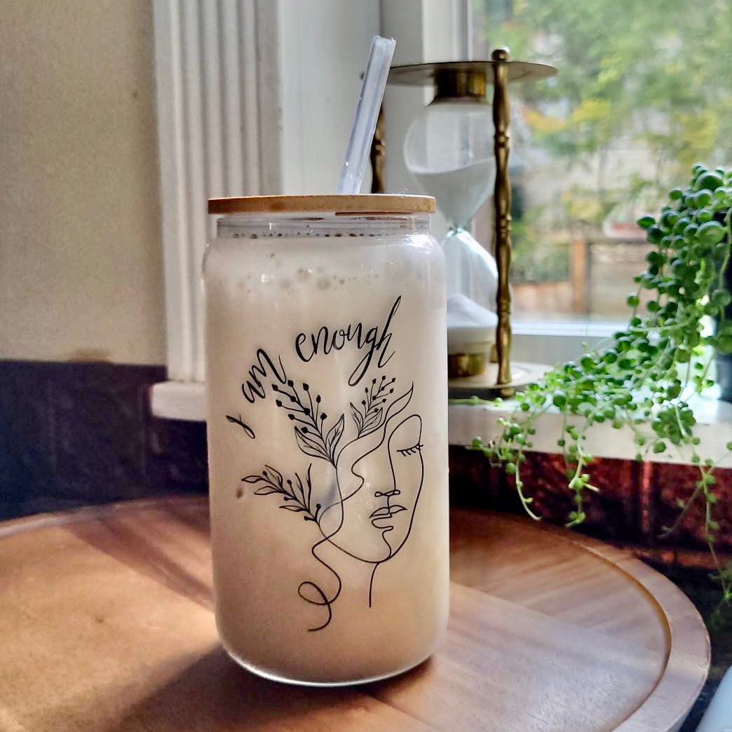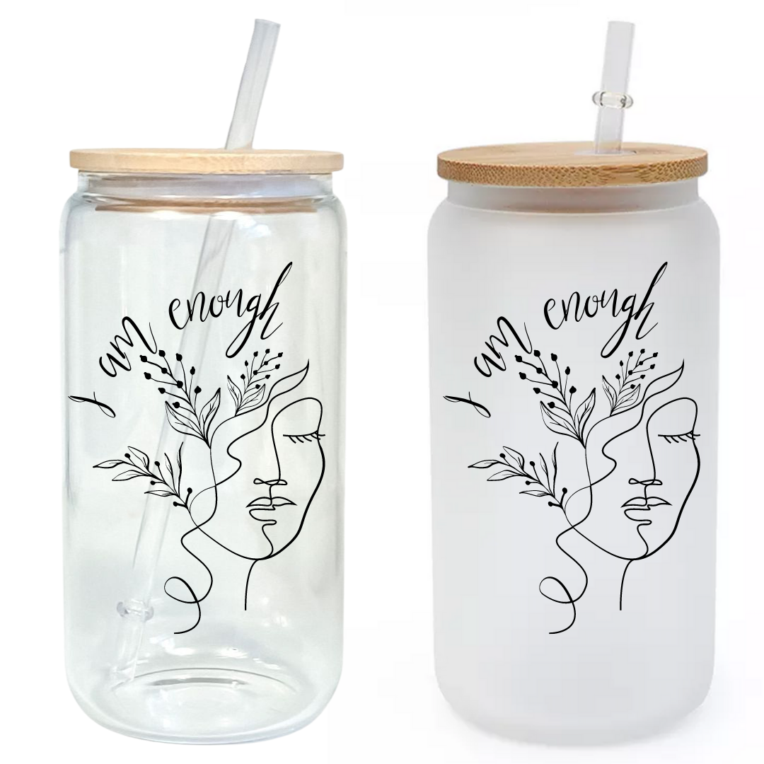 I Am Enough Glass Tumbler with Bamboo Lid & Straw