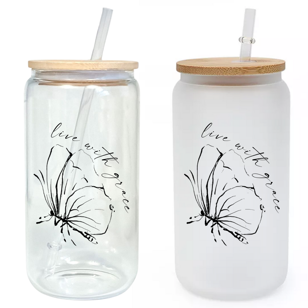 Live with Grace Glass Tumbler with Bamboo Lid & Straw
