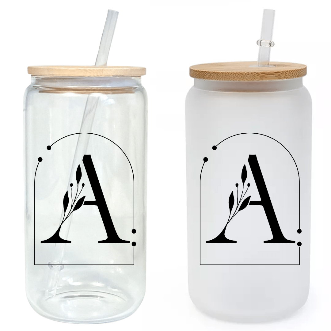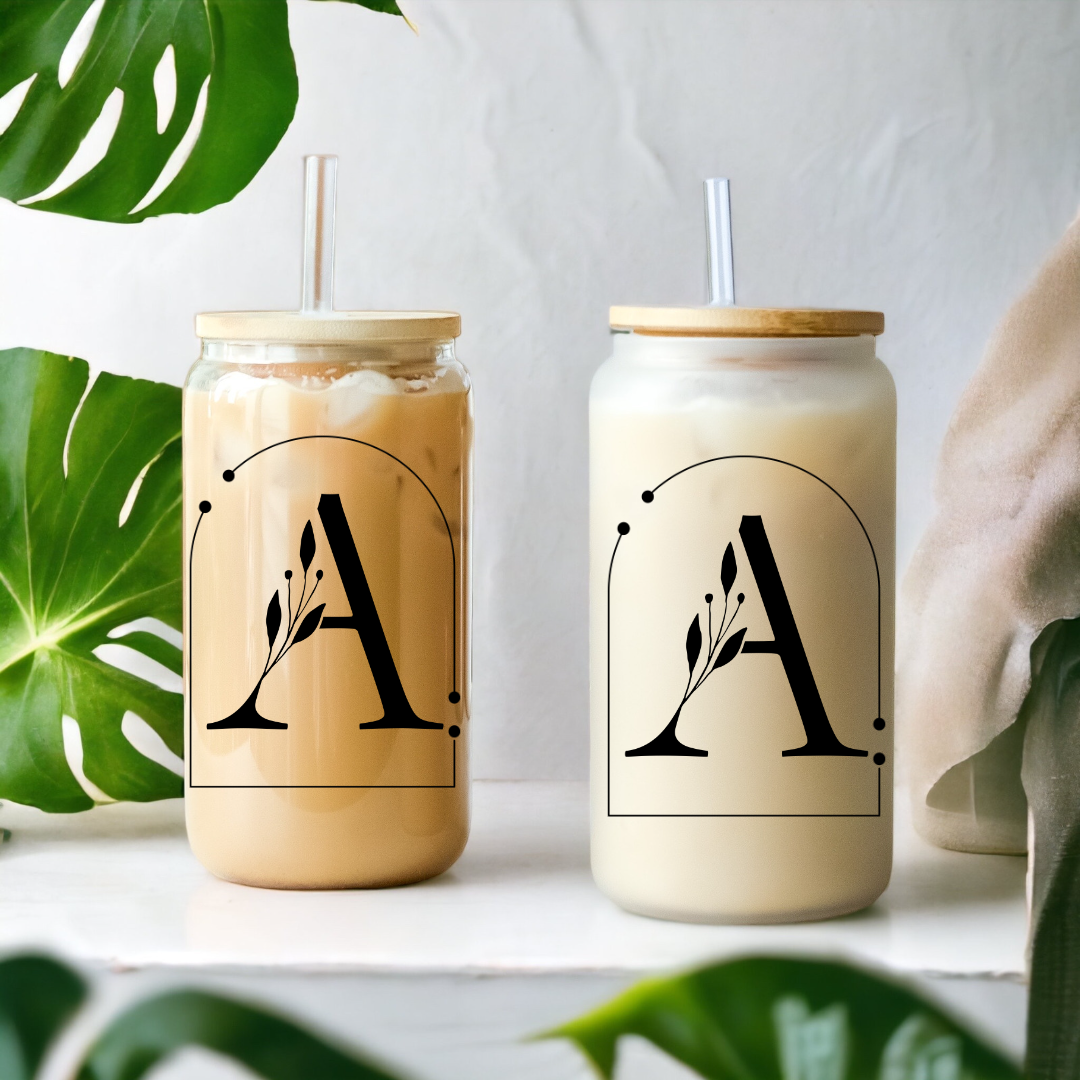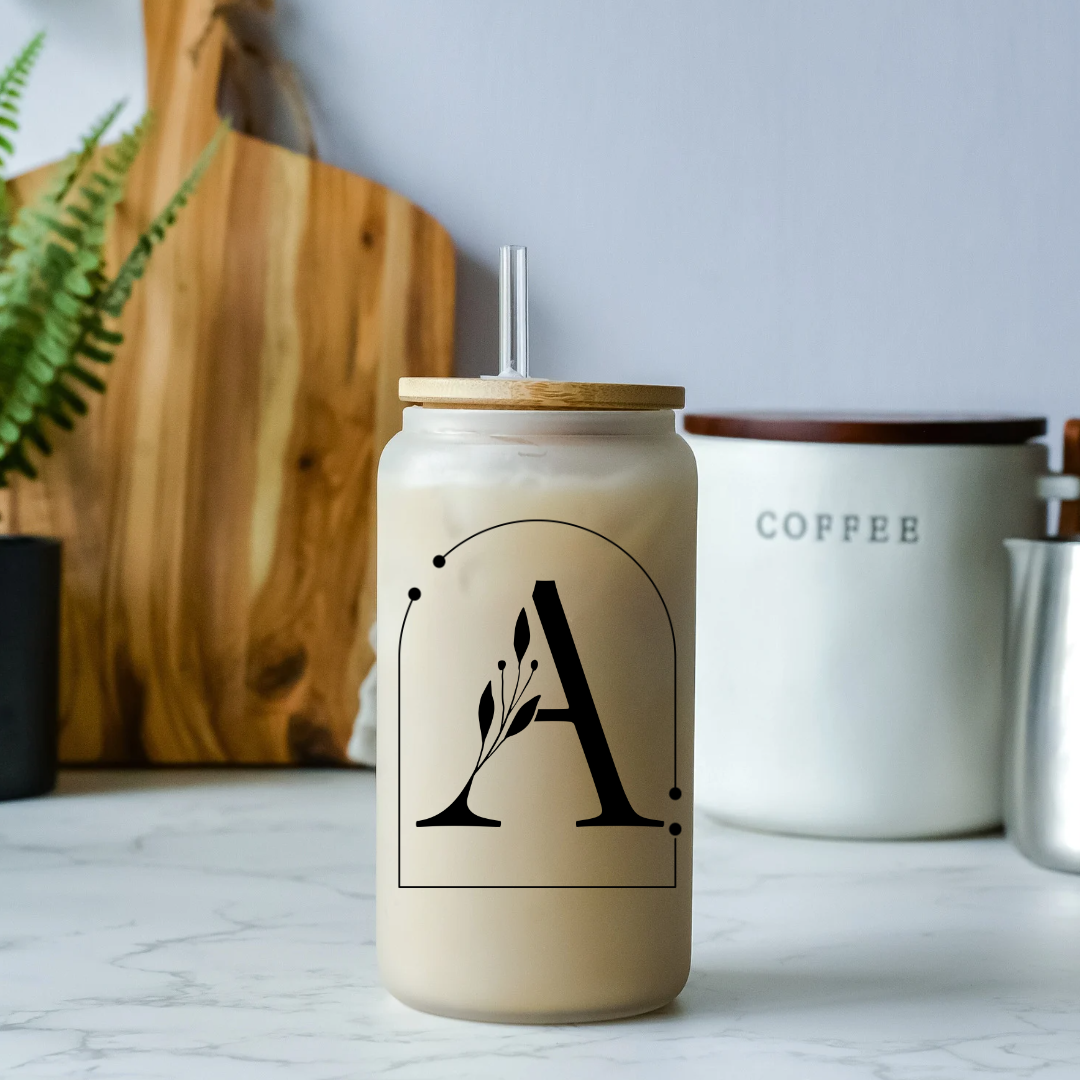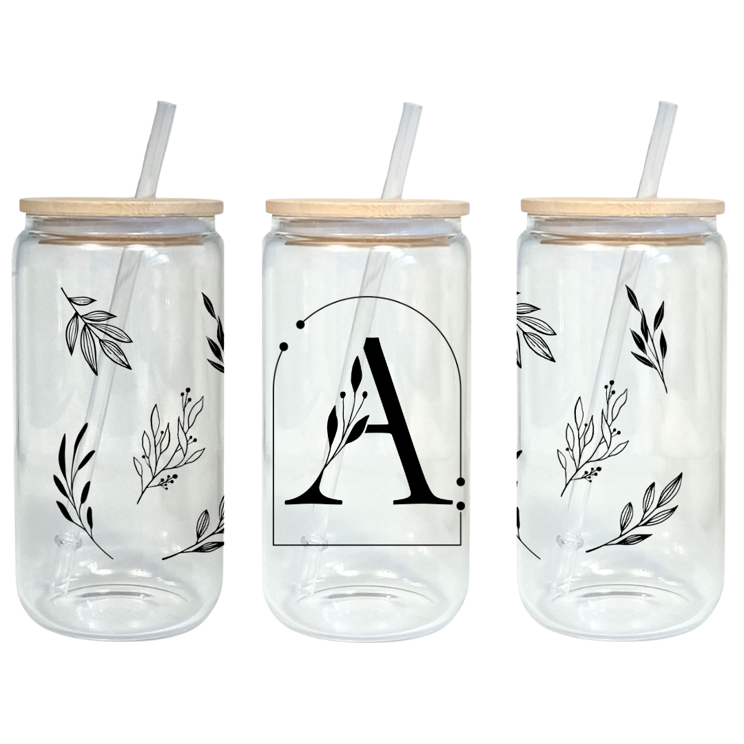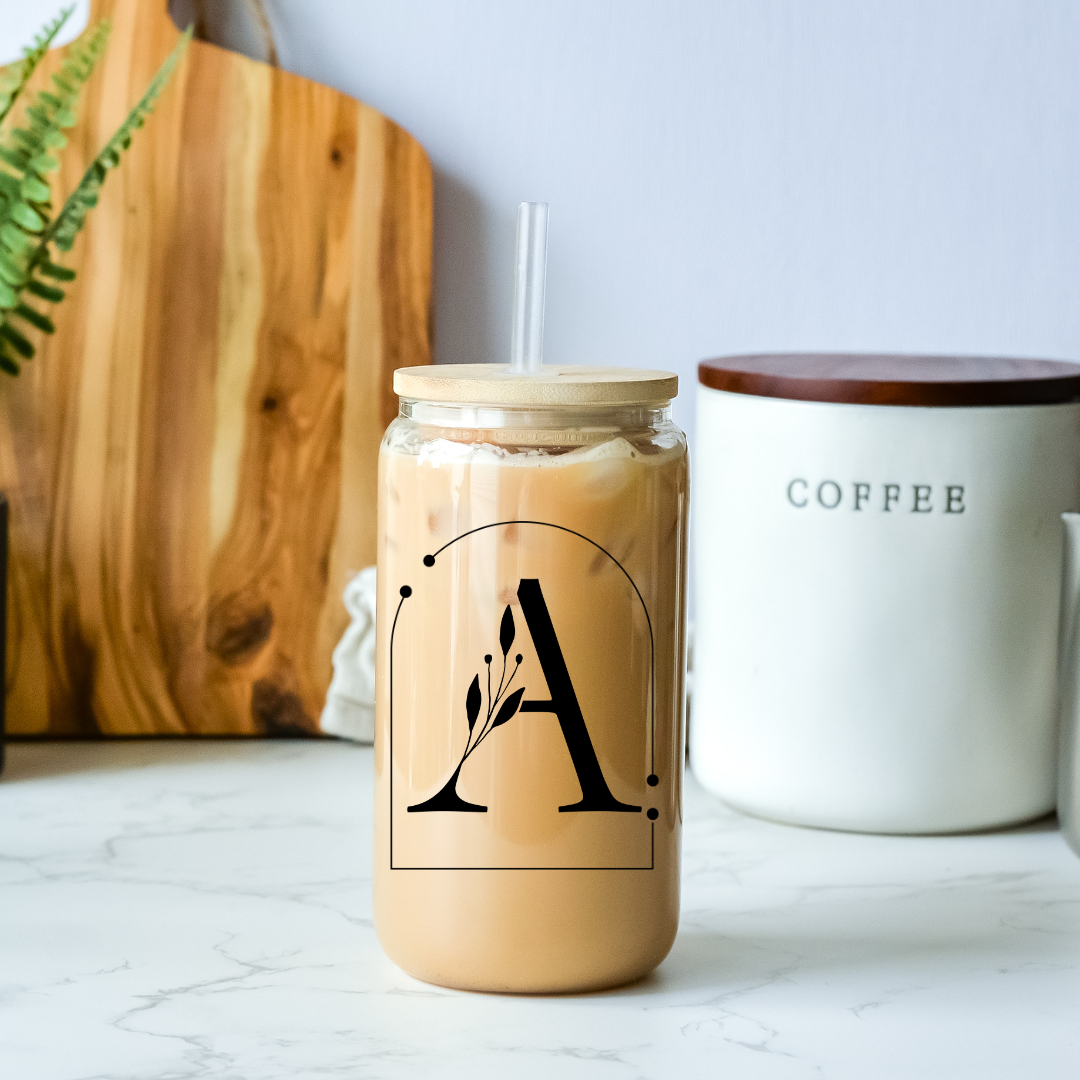 Midnight Blooms Initials 16oz Glass Tumbler with Bamboo Lid & Straw for Iced Coffee & Beverages
