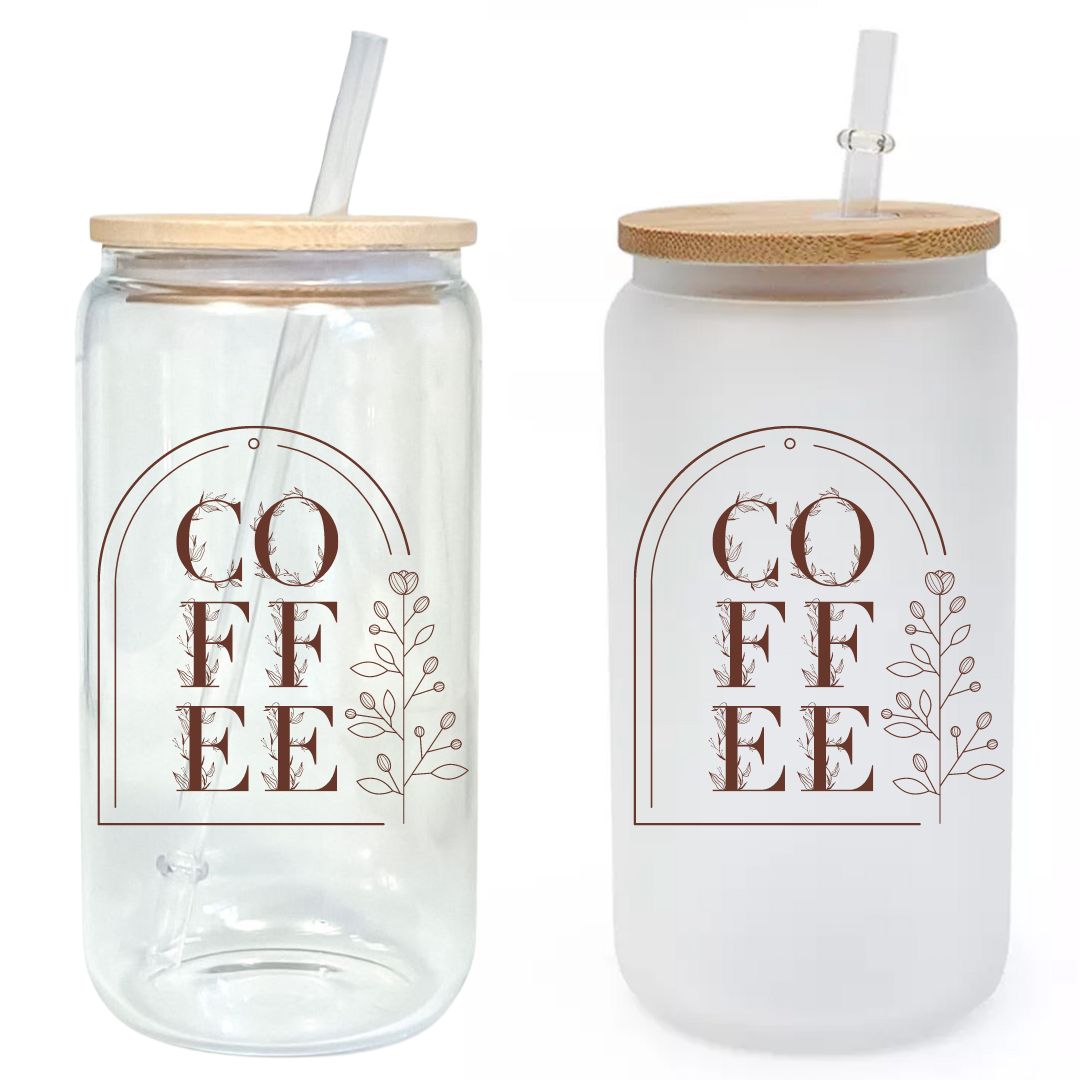 From our Coffee collection this is our super cute, trendy, high quality and durable 16oz glass tumbler cup with a bamboo lid and plastic straw included.