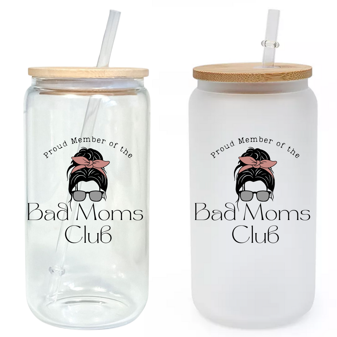 Messy Bun Bad Moms Club Glass Tumbler with Bamboo Lid & Straw