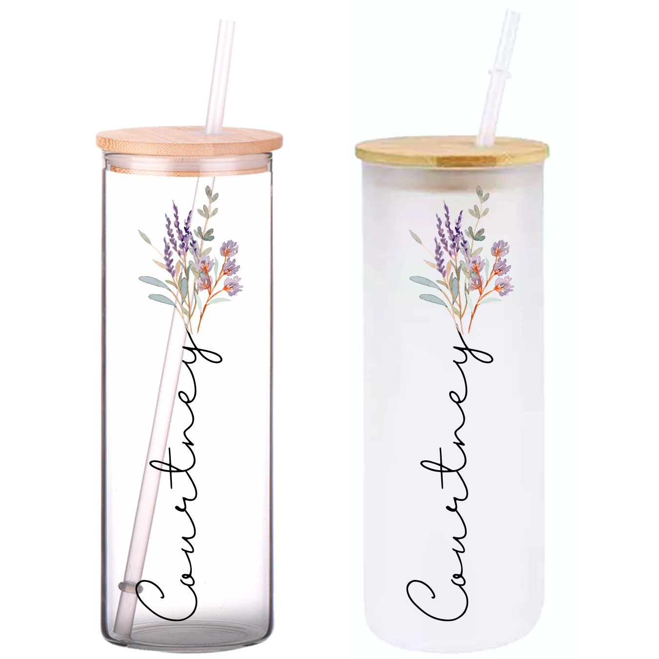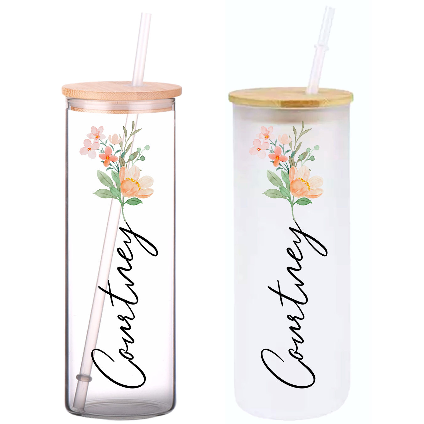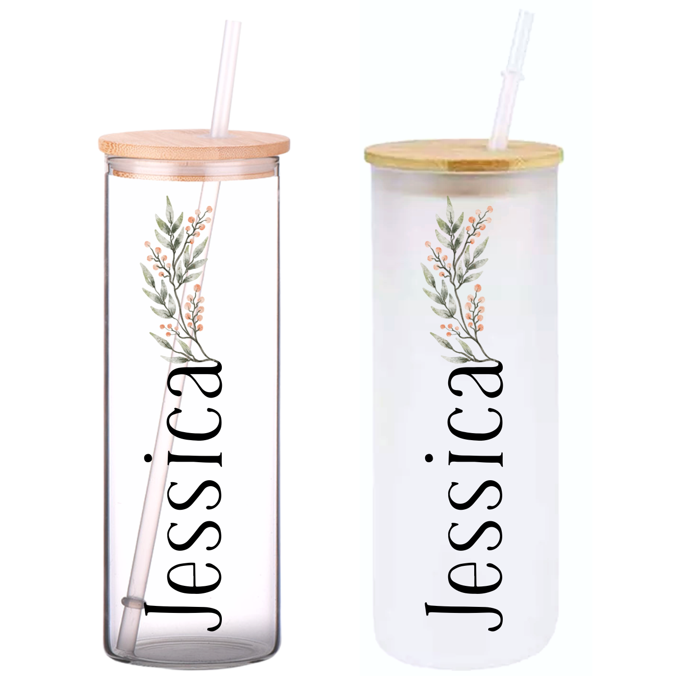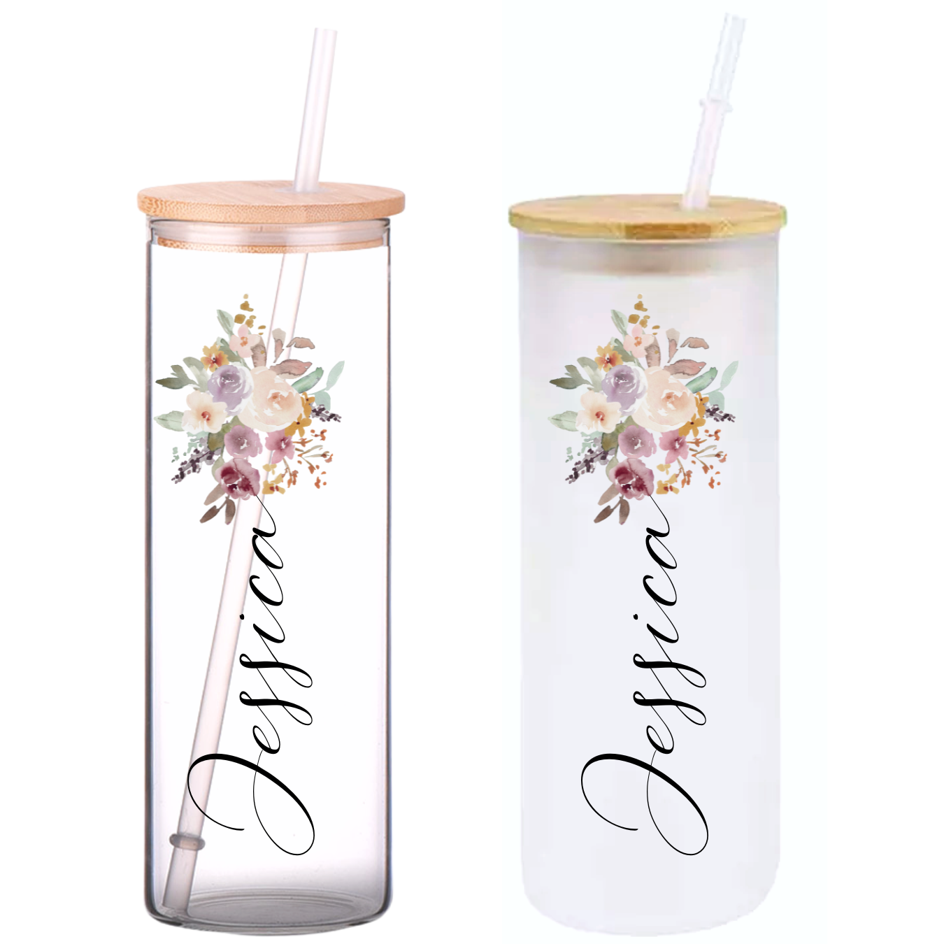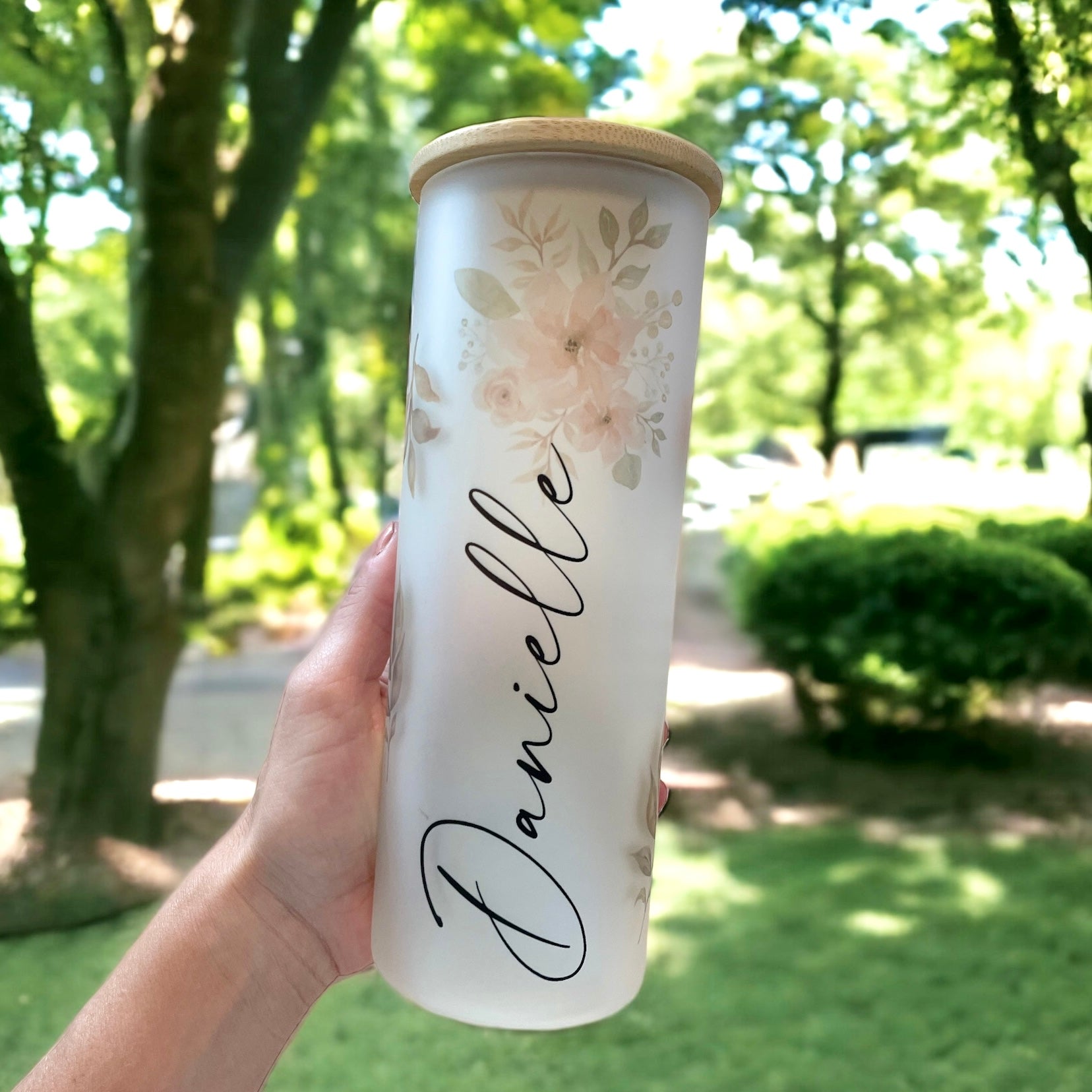 Watercolor Personalized Name on 25oz Frosted Glass Tumbler