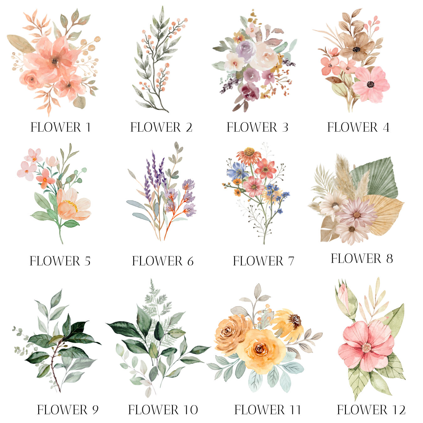 She can be personalized with you or your favorite person's name! Choose one of the 6 fonts and one of the 12 watercolor floral options.