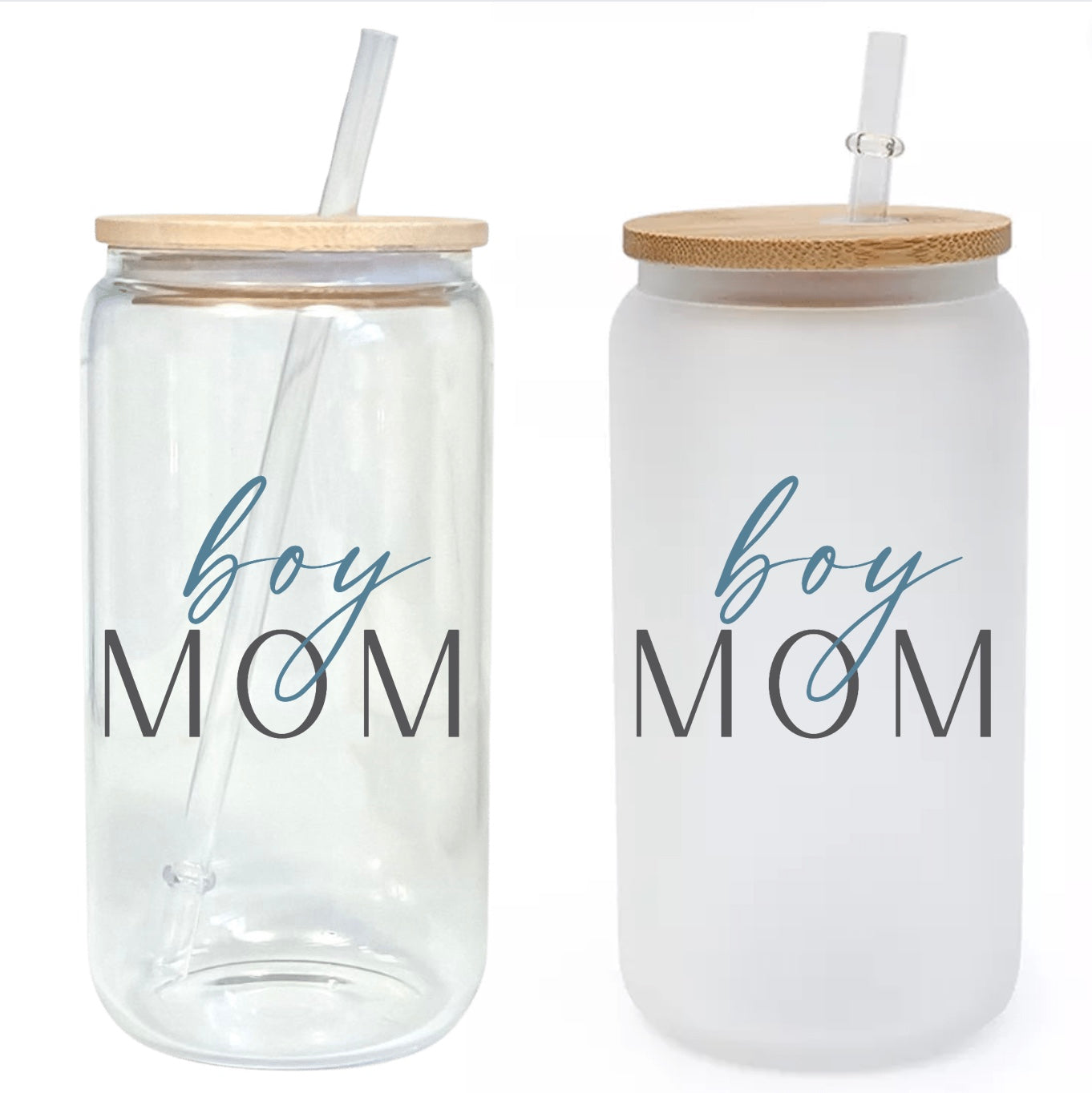 The perfect gift for the boy mom coffee lover in your life! 16oz Glass Tumbler for when an iced coffee is the better option.