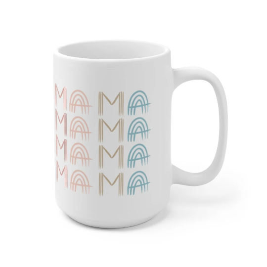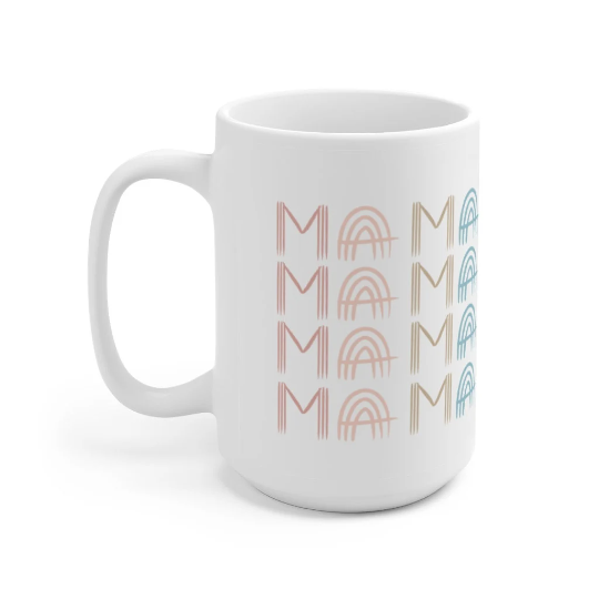 This is a 15oz high-quality white ceramic coffee mug with premium printing. The design is printed on both sides of the mug with a C-shaped handle. Perfect for both the left handed and right handed mom.