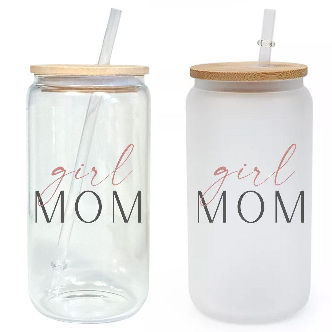 Girl Mom 16oz Glass Tumbler with Bamboo Lid & Straw