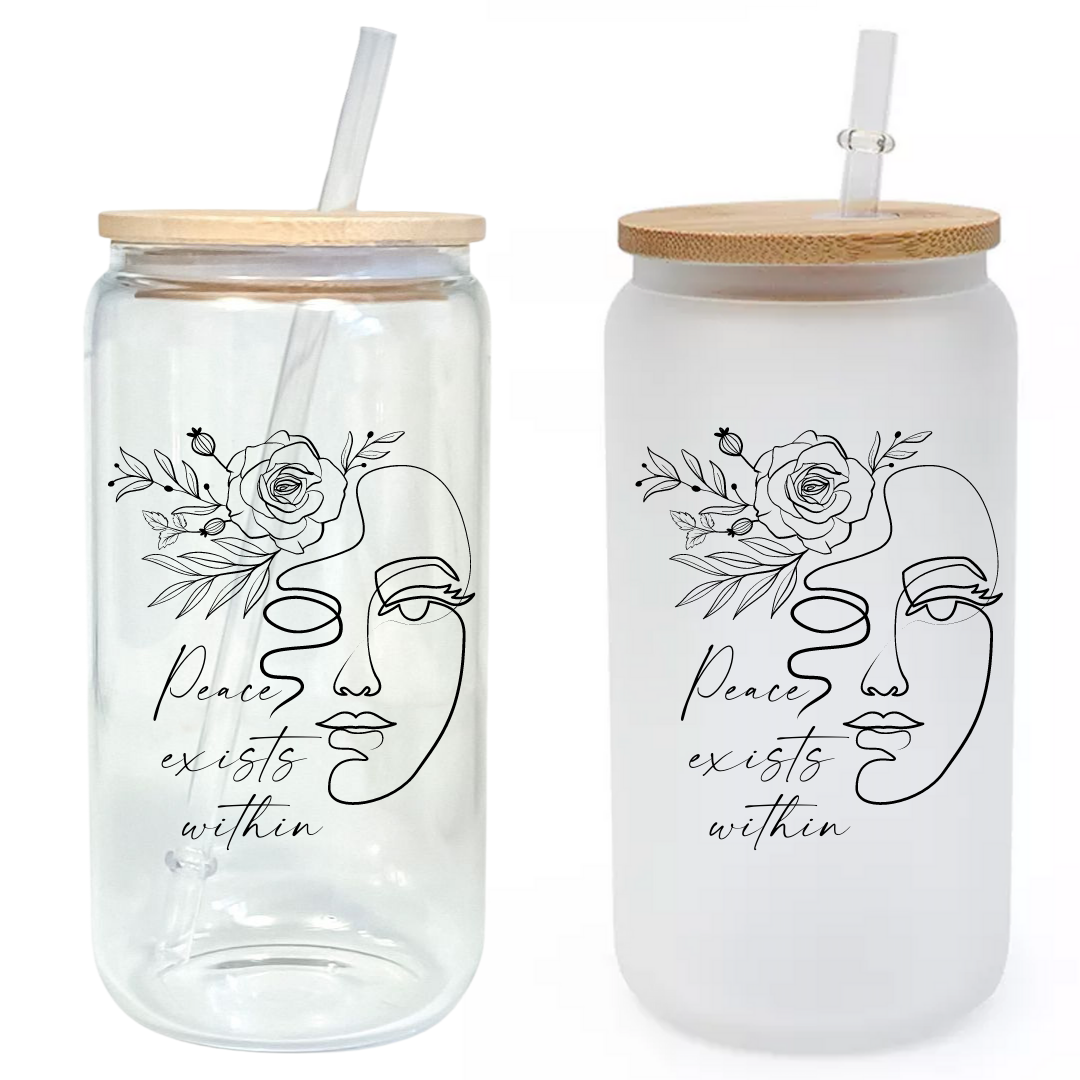 IN STOCK SALE Peace Exists Within Glass Tumbler with Bamboo Lid & Straw