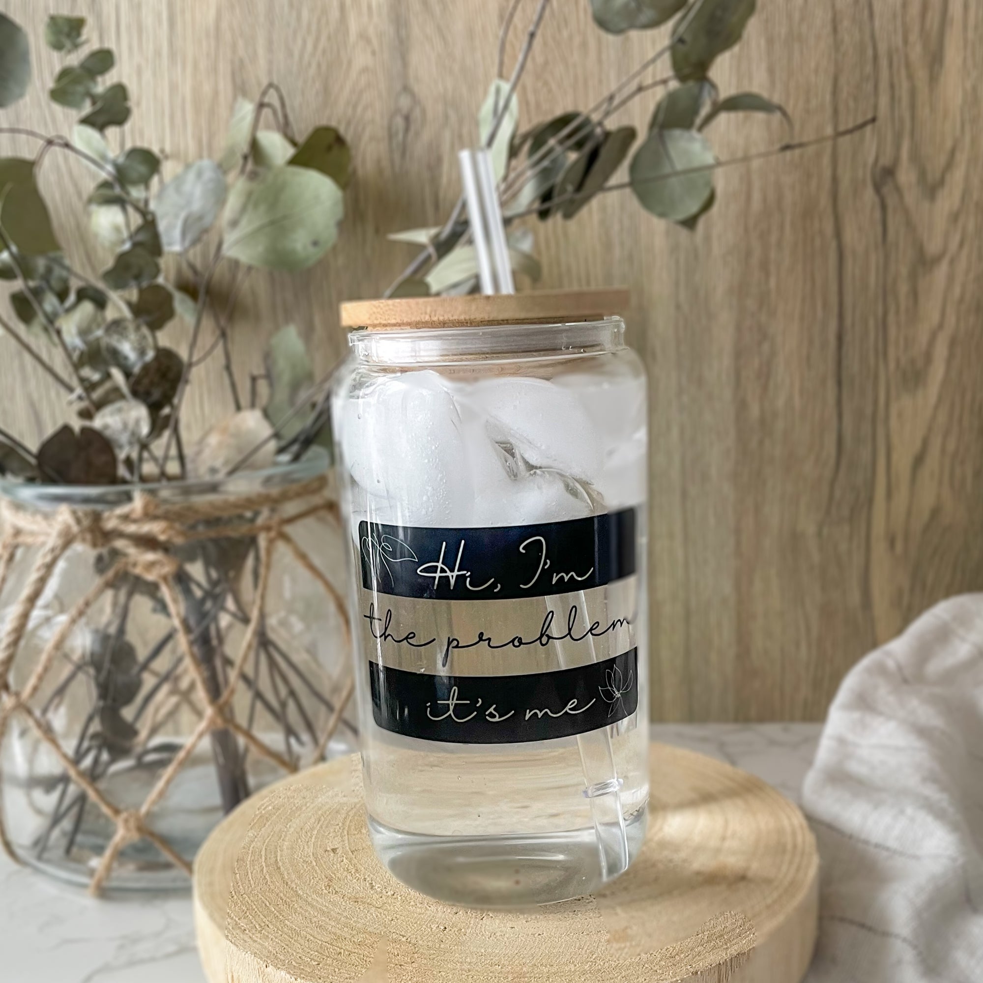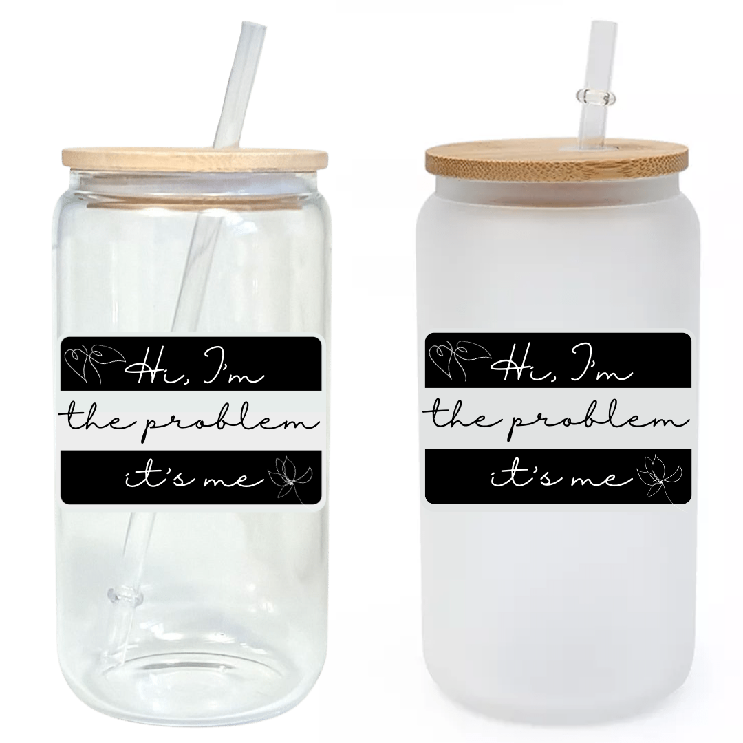 Hi I'm The Problem Its Me 16 oz Glass Tumbler w/ Bamboo Lid & Straw
