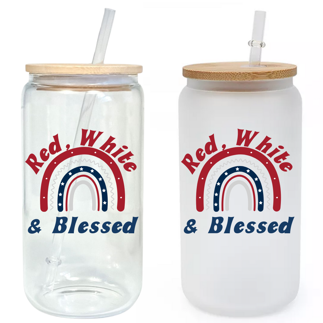 Happy Birthday American! Take your Patriotic 4th of July game up a notch with these 16 oz glass tumblers in either clear or frosted! Fill them with ice cold water to keep hydrated for the upcoming summer holiday or put your favorite mixed drink in it! You can even take the lid and straw off and fill it with your favorite ice cold brew.
